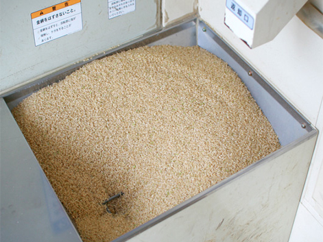 籾すり(もみすり) 玄米が出来あがります。 刈りいれた稲を精米機にかけます。 最近の精米機は良くできており 精…